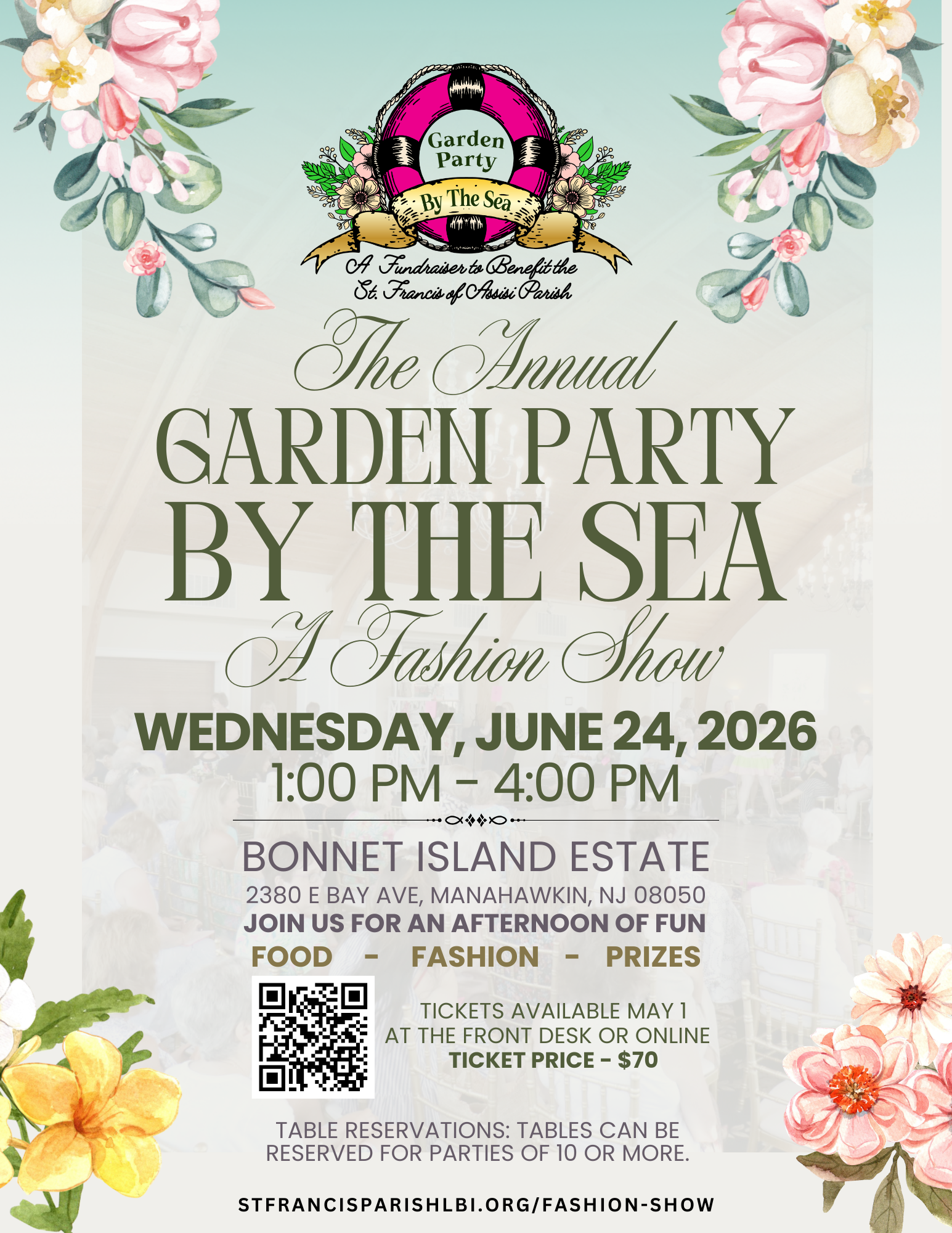 Our Committee is honored to host our annual Garden Party by the Sea. St. Francis Parish remains a source of inspiration and hope for so many people and has served as a light in the darkest of times. Through sponsorship, you can help the parish defray operating costs and continue to offer essential services and faith-based fellowship to the entire community. All sponsors will be acknowledged at the event and on social media.
